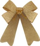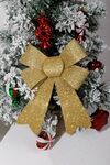 Dekorácia MagicHome Mašľa na vianočný veniec z trblietavého materiálu, ktorá rozžiari interiér vášho domu. Môže sa použiť aj na vianočnú girlandu. Farba mašle je zlatá a má rozmer 13x21 cm.