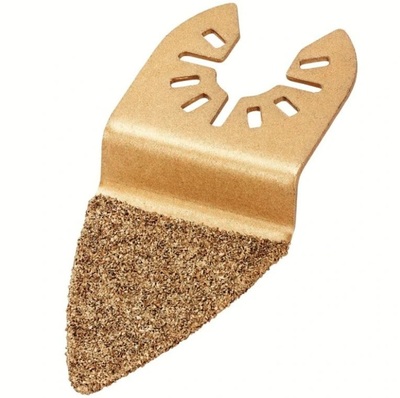 Trojuholníkový karbidový list na hrubé brúsenie. Ideálne na odstraňovanie škár, lepidla, hrubé brúsenie betónu, kameňa a dreva.