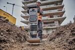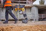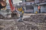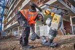 MAJTE VŠETKO POD KONTROLOU VĎAKA SYSTÉMU DEWALT POWERSHIFT. Systém akumulátorových zariadení navrhnutý tak, aby dosahoval špičkový výkon a prevádzkovú dobu. Už nemusíte čakať na naštartovanie, nemusíte zastavovať, aby ste doplnili palivo, ani trpieť obmedzenia súvisiace s benzínom. Tento akumulátorový vibračný pech poskytuje výkon ekvivalentný výkonu benzínových zariadení, a to s nulovými emisiami. Bezuhlíkový utesnený motor so stupňom krytia IP56 zabezpečuje špičkovú rýchlosť pohybu dopredu na úrovni 14,4 m/min a jednoducho prístupné ovládacie prvky so stupňom krytia IP67 a duálny volič rýchlosti umožňujú lepšie ovládanie náradia. Vďaka systému priameho pohonu a jednoducho použiteľnému miestu na plnenie oleja a vykonávanie kontroly sú požiadavky na údržbu minimálne. Zabudovaný hák na zdvíhanie a manipuláciu pomocou žeriavu a voliteľná súprava kolies (DCS661, nie je súčasťou balenia) umožňujú lepšiu mobilitu na náročných pracoviskách.
