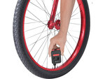 Malý akumulátorový kompresor s hmotnosťou len 150g je ideálnym riešením pre cyklistov, ktorí požadujú ľahké a multifunkčné zariadenie na hustenie kolies v teréne. Kompaktné rozmery umožňujú uloženie do brašne, alebo do vrecka dresu. Konštrukcia spája nízku hmotnosť, jednoduché ovládanie a výkon postačujúci pre väčšinu bežných bicyklových plášťov. Li-ion akumulátor poskytuje energiu na nafúknutie viacerých kolies a dobíja sa cez USB, čo umožňuje rýchle doplnenie z powerbanky alebo notebooku. Maximálny tlak 10,3bar je vhodný pre horské aj cestné bicykle, pričom 14cm hadička uľahčuje pripojenie k ventilu. Kompresor je kompatibilný s ventilmi Presta (galuskovými) aj Schrader (auto) a s použitím adaptéru možno nafúknuť aj športové lopty či drobné vybavenie. Odolné plastové telo chráni prístroj pred bežnými nárazmi a karabína umožňuje praktické uchytenie na batoh alebo rám. Ovládanie je jednoduché - nastaví sa požadovaný tlak a po jeho dosiahnutí sa kompresor automaticky vypne, čím šetrí energiu. Predstavuje modernú a komfortnú alternatívu ku klasickej ručnej pumpe, poskytujúcu presnosť a spoľahlivosť hustenia v teréne.