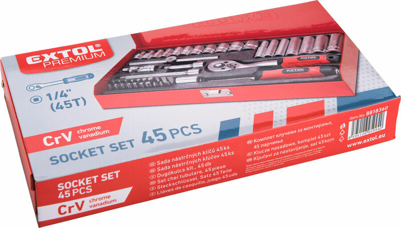 Chcete doručit zboží do Česka? Prohlédněte si Extol Premium gola sada 1/4" 45-dielna 8818360