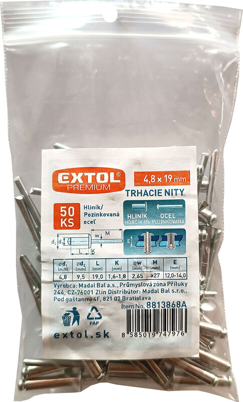 Otázka k tovaru: Extol Prmeium trhacie nity hliníkové 4,8x19mm 50ks, 8813868A