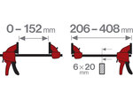 | doplňujúci parameter: | 150mm, pracovný rozsah: zovretie 0-152mm, rozopretie 206-408mm |
