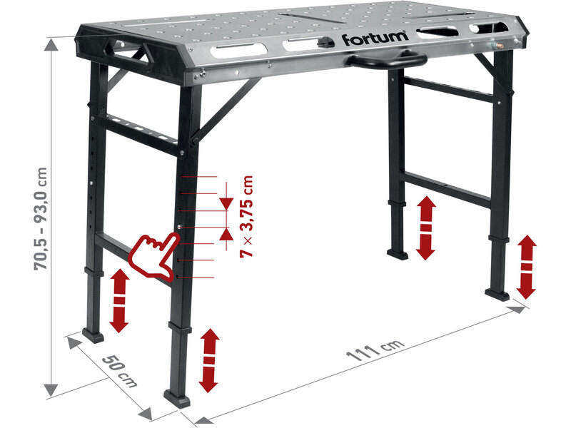 Otázka k tovaru: Fortum zvárací stôl skladací, max. 454kg, 107x53cm, výška 70-93cm, 4759970