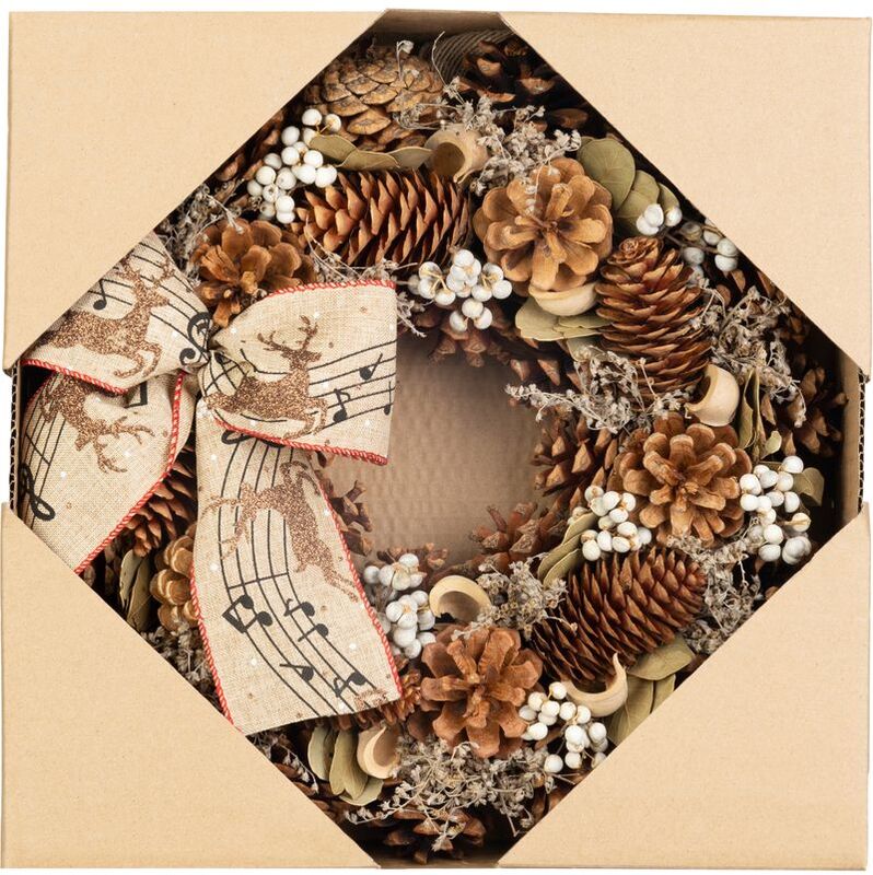 Vytvorte si čarovnú sviatočnú atmosféru s elegantným prírodným vianočným vencom MagicHome. Tento veniec je vyrobený z prírodných materiálov, ako sú šišky a sušené dekorácie, ktoré pôsobia autenticky a prinášajú do interiéru kúsok prírody.